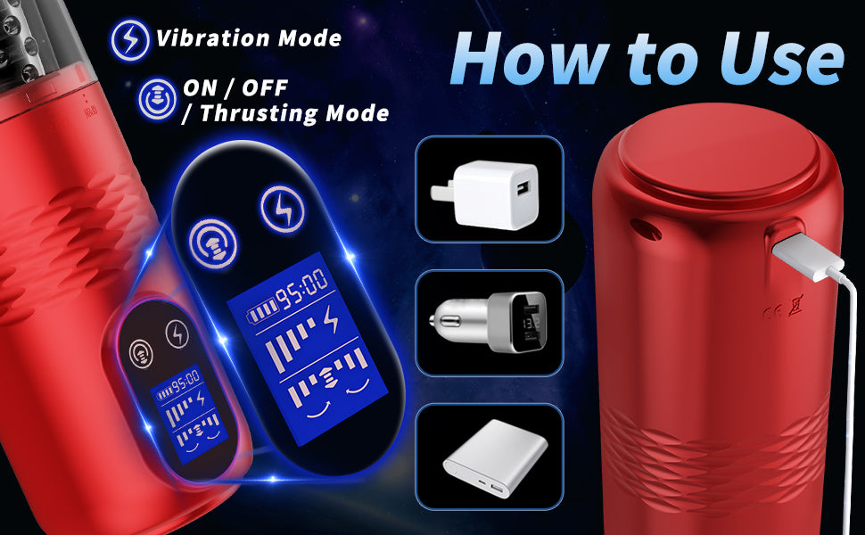 LCD Display & Touch Button - Different from other male masturbators, our sex toys for men equipped with an LCD display and touch button, which can show the battery power, using time, vibrations, and thrusting level, making the pocket pussy easy to use and record the most appropriate modes for you. Besides, the touch button makes male masterburbater toy easy to control the vibration and thrusting modes. A perfect experience is on the way.
