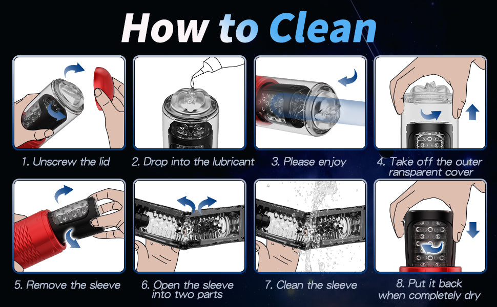 Easy to Clean & Fit More Size - The male sex toys have a removable sleeve, which can easily separate from the machine. Take out the sleeve and rinsed it under the running water. After washing it and drying it, you can put the sleeve back to the pocket pussy. The male masturbators can be inserted in a length of 7.48 inches that fit for most size.