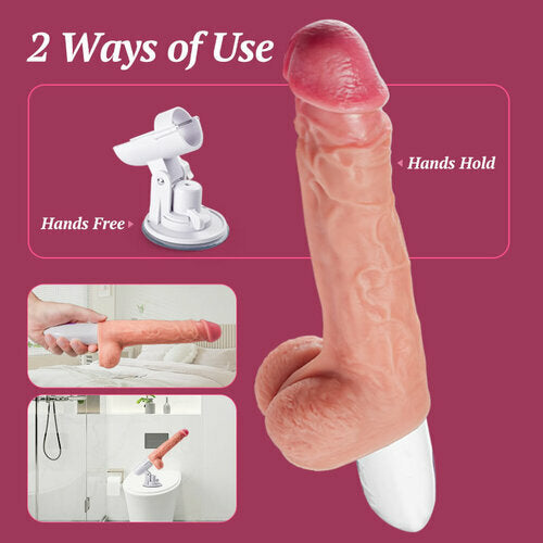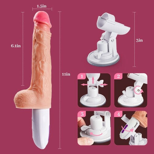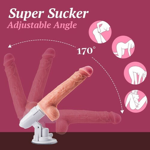 This telescoping lover is a total orgasmic powerhouse always at the ready. Boasting 8 vibration patterns and 8 thrusting patterns with the added stimulation of rotating and heating, there's sure to be a setting to satisfy you. With this sex machine, you can explore a multitude of angles and heights, where it be on a bed, couch, chair, or table. Mountable suction cup with 170° adjustable angle design also fulfill any postures you want. The multi-functional dildo could be detached from the suction base and be interchanged with other similar types of penetrators for solo play or couple play. With 6.1 inch insertable length and 0.7 Inch telescopic length, it easily seeks the P-spot, G-spot and other inner sweet spots. 10m-control remote with IPX7 waterproof is a genius combination for those guys who fancy experiencing a marvelous sex dominated by others in a tub, bathroom or anywhere. It's a great starter toy before going to one of the bigger machines like you see in the movies.